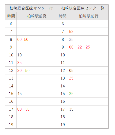 | 時間 | 柏崎駅前発 | 南口発 |